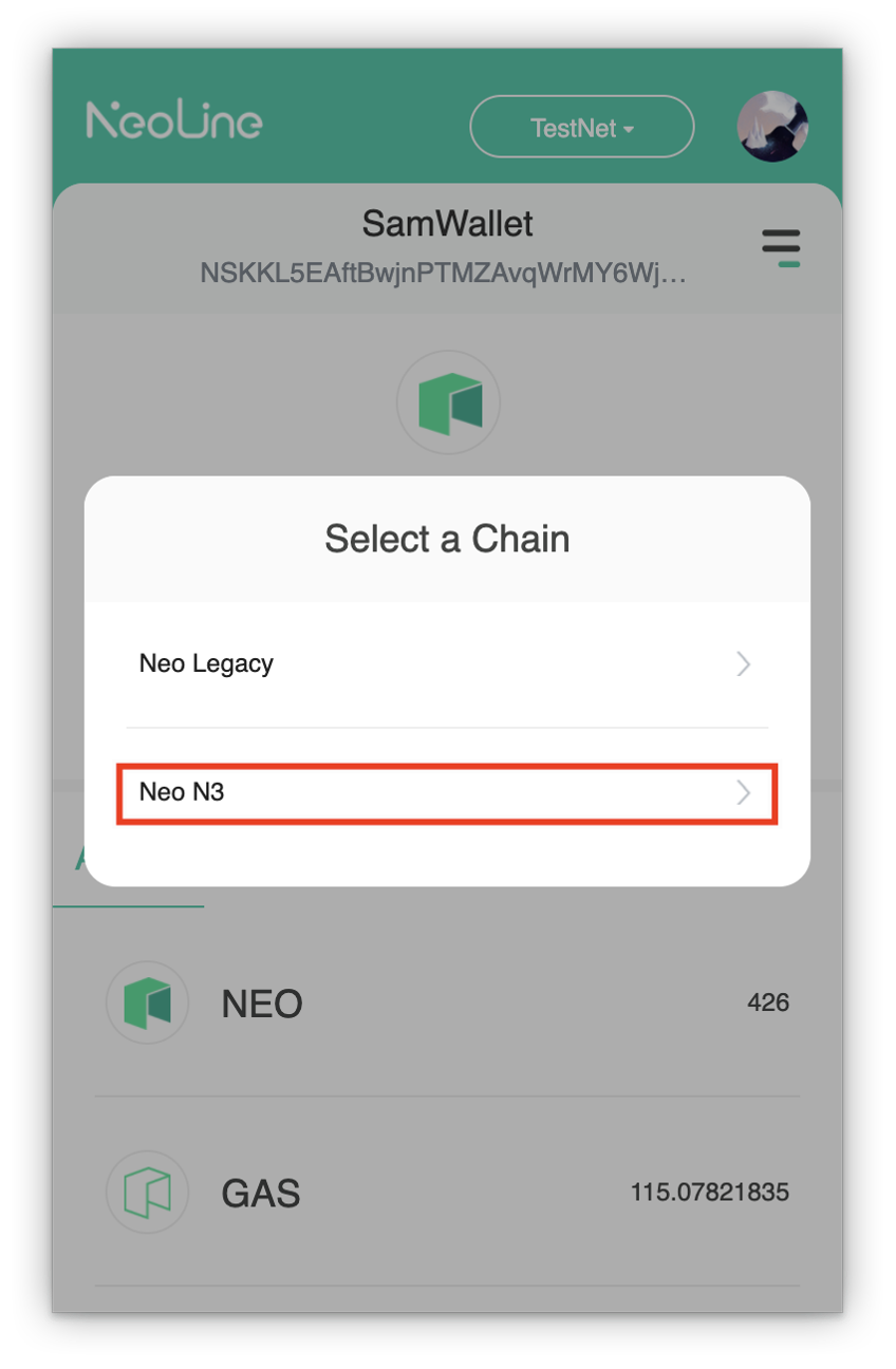 9. Click Select an N3 address to select an N3 wallet address that you want to migrate to and then click Done.