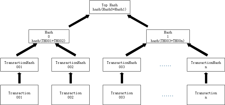 通过Transcation001、Transcation002、Hash1 计算 Top Hash 与原本的 Top Hash 比对,即可验证 Transcation001 的有效性。